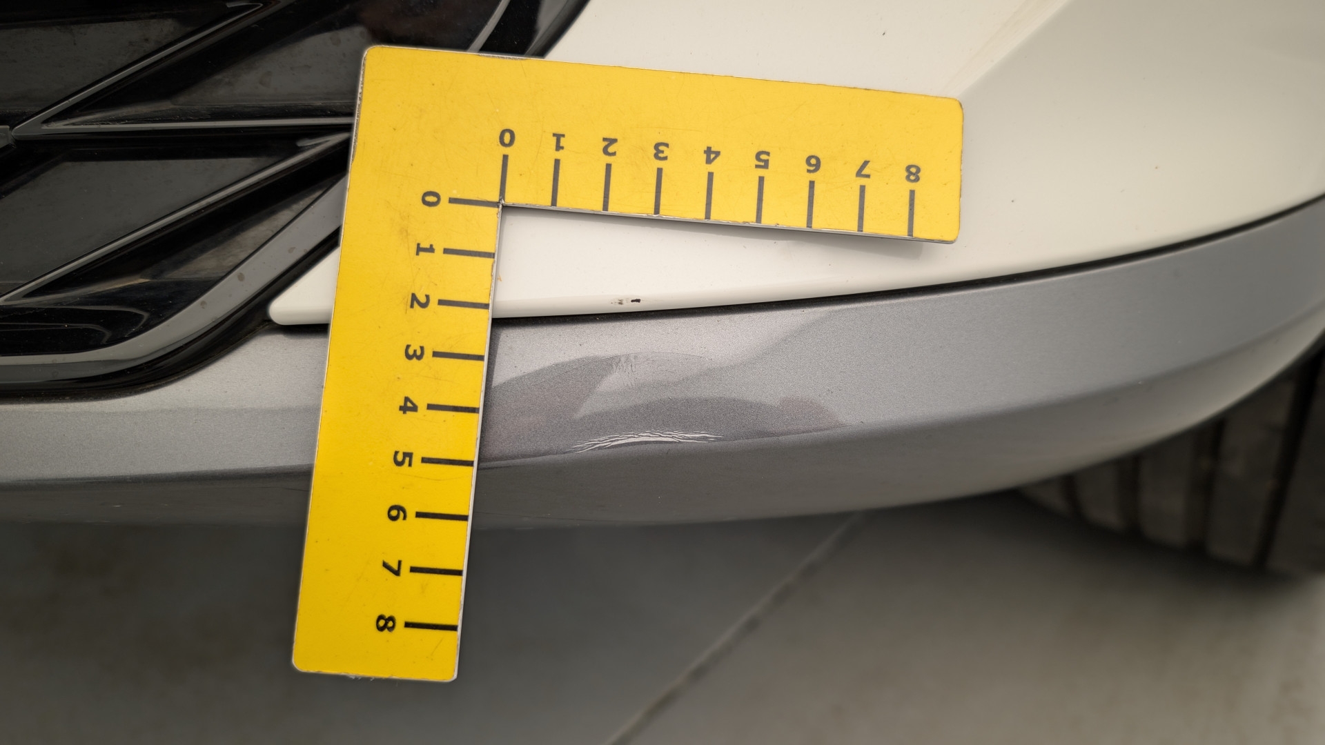 Pare choc avant partie inferieure gauche deformations et rayures
