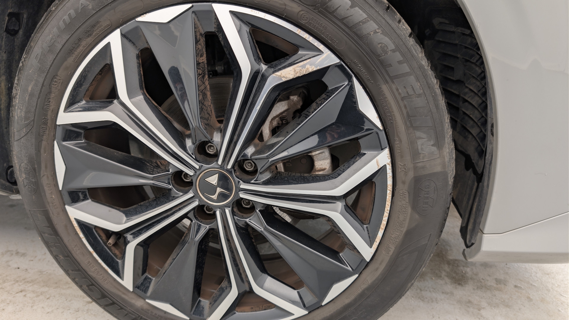 Jante arrière gauche et avant droite rayures