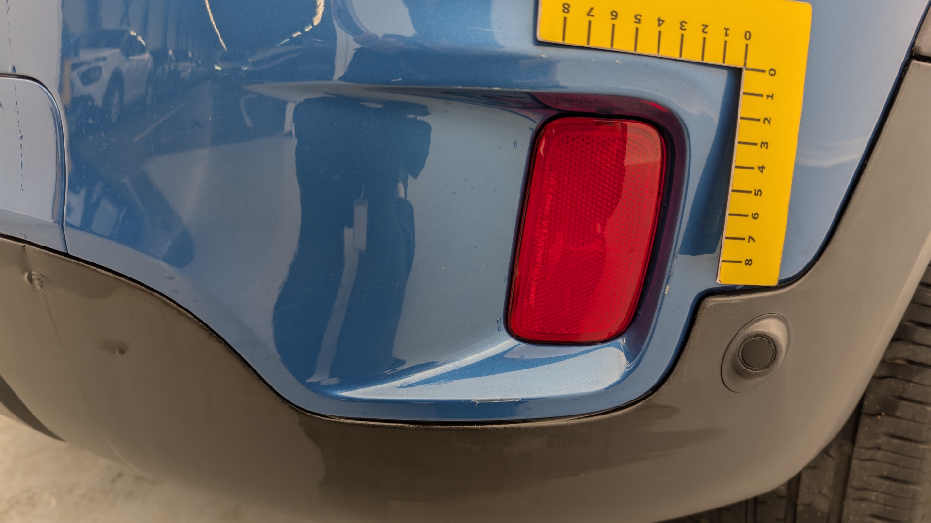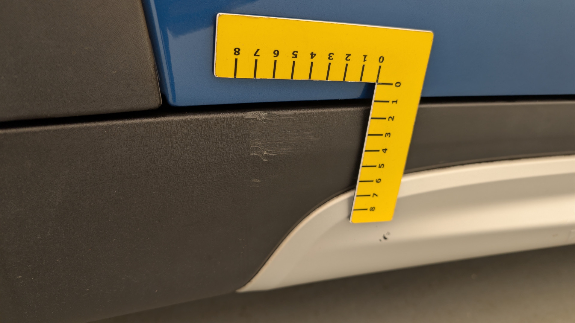 Pare-choc arrière déformations et rayures partie mat et éclats partie peinte