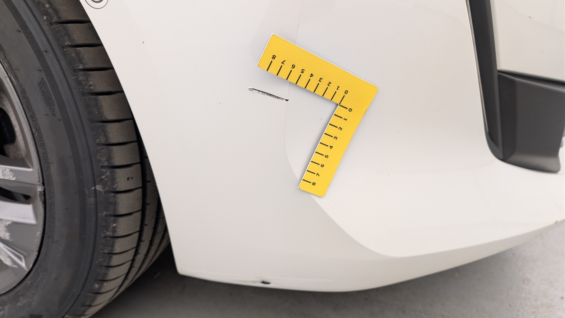 Pare-choc avant rayures, éclatset défaut d'aspect côté gauche