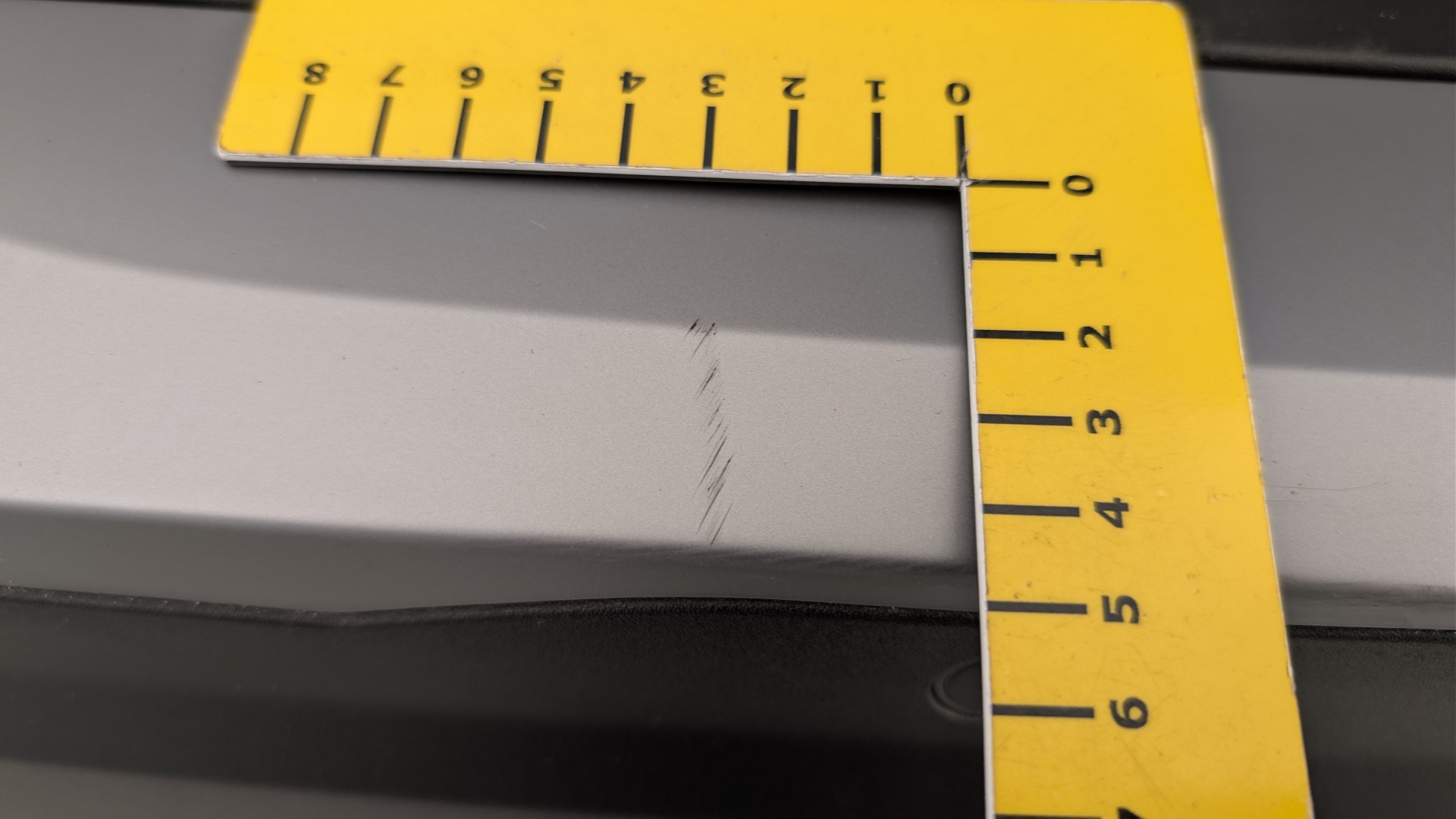 Pare chocs arrière, enjoliveur gris, griffures; partie noire, rayures de surface