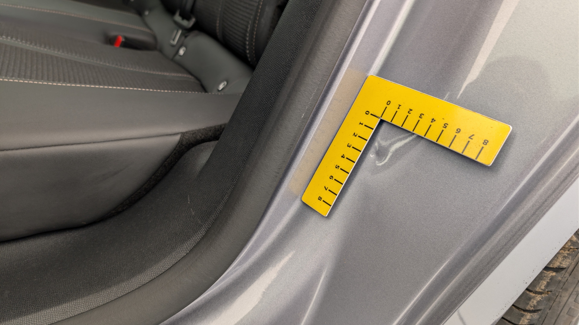 Garniture d'entrée de porte arrière gauche sur caisse, légères rayures