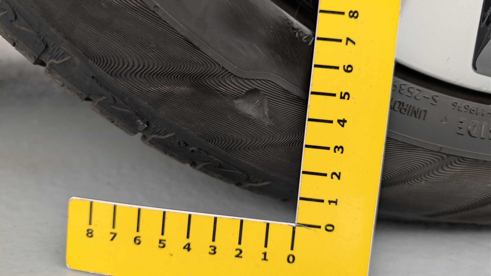 Pneu avant droit accroc sur le flanc sans incidence de sécurité